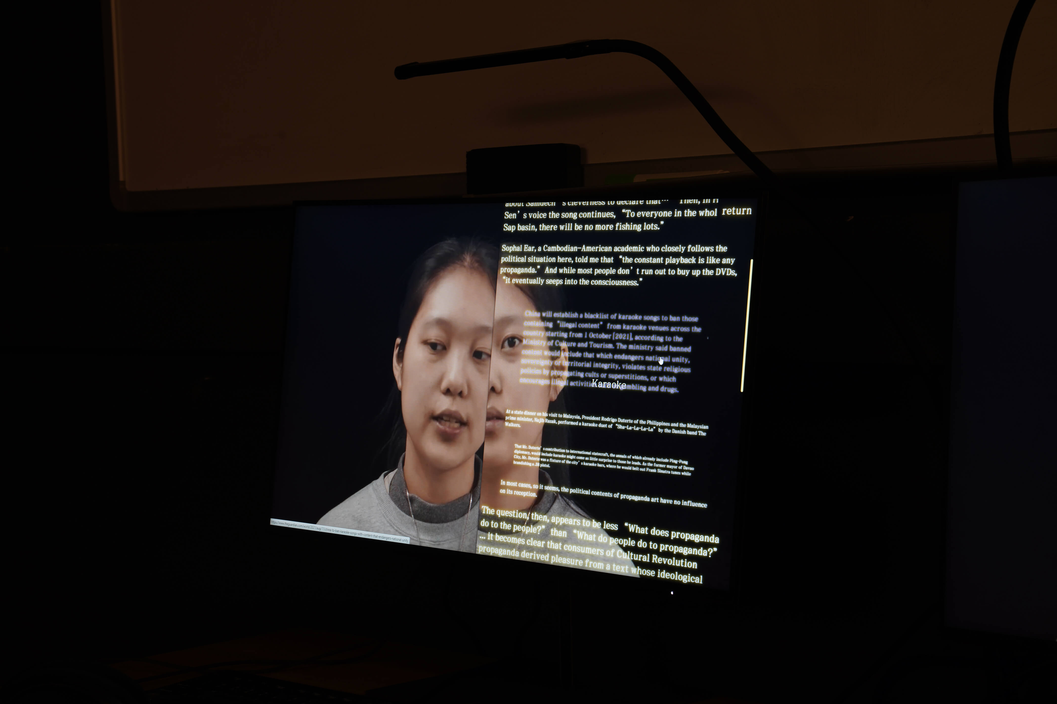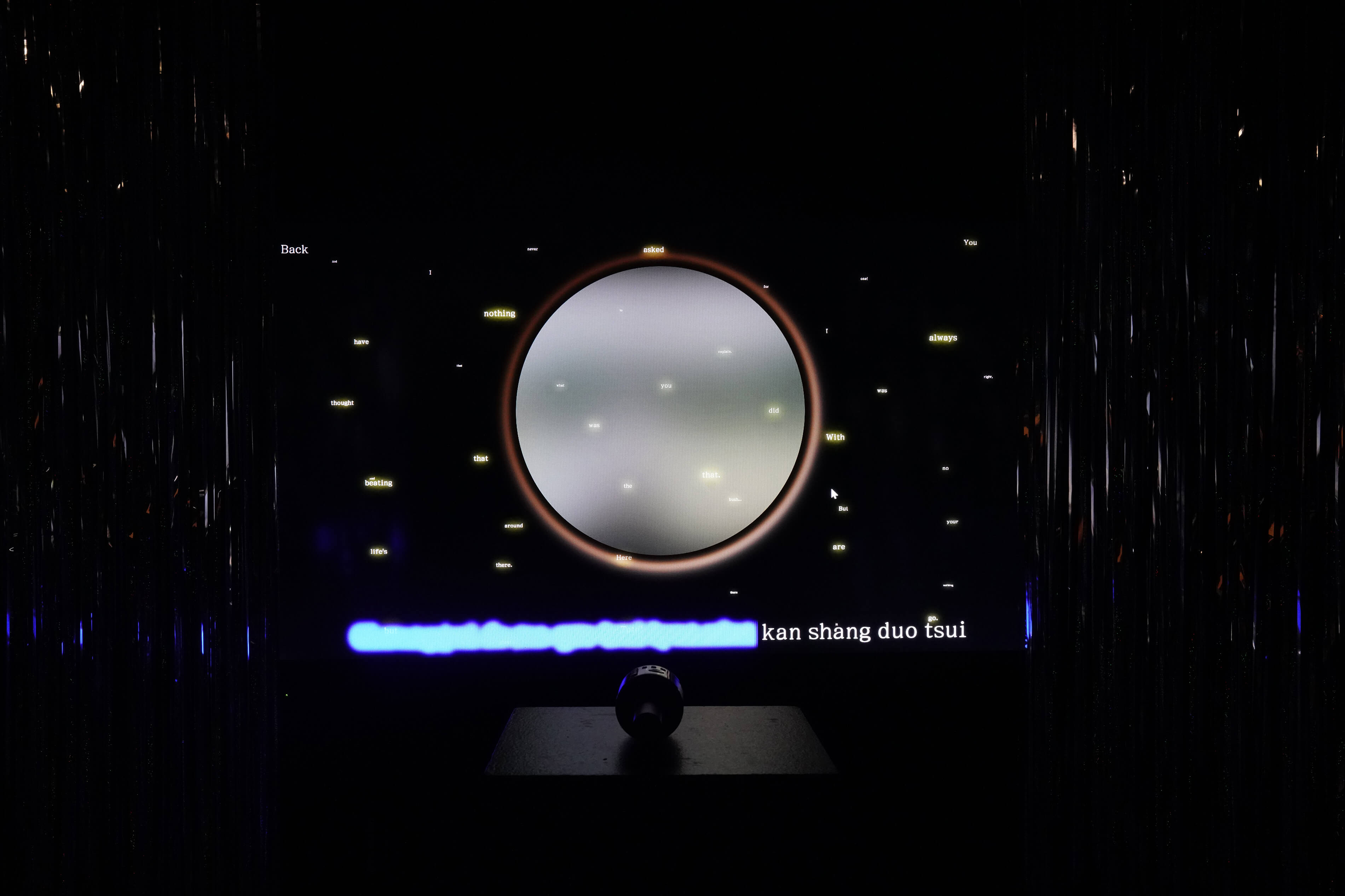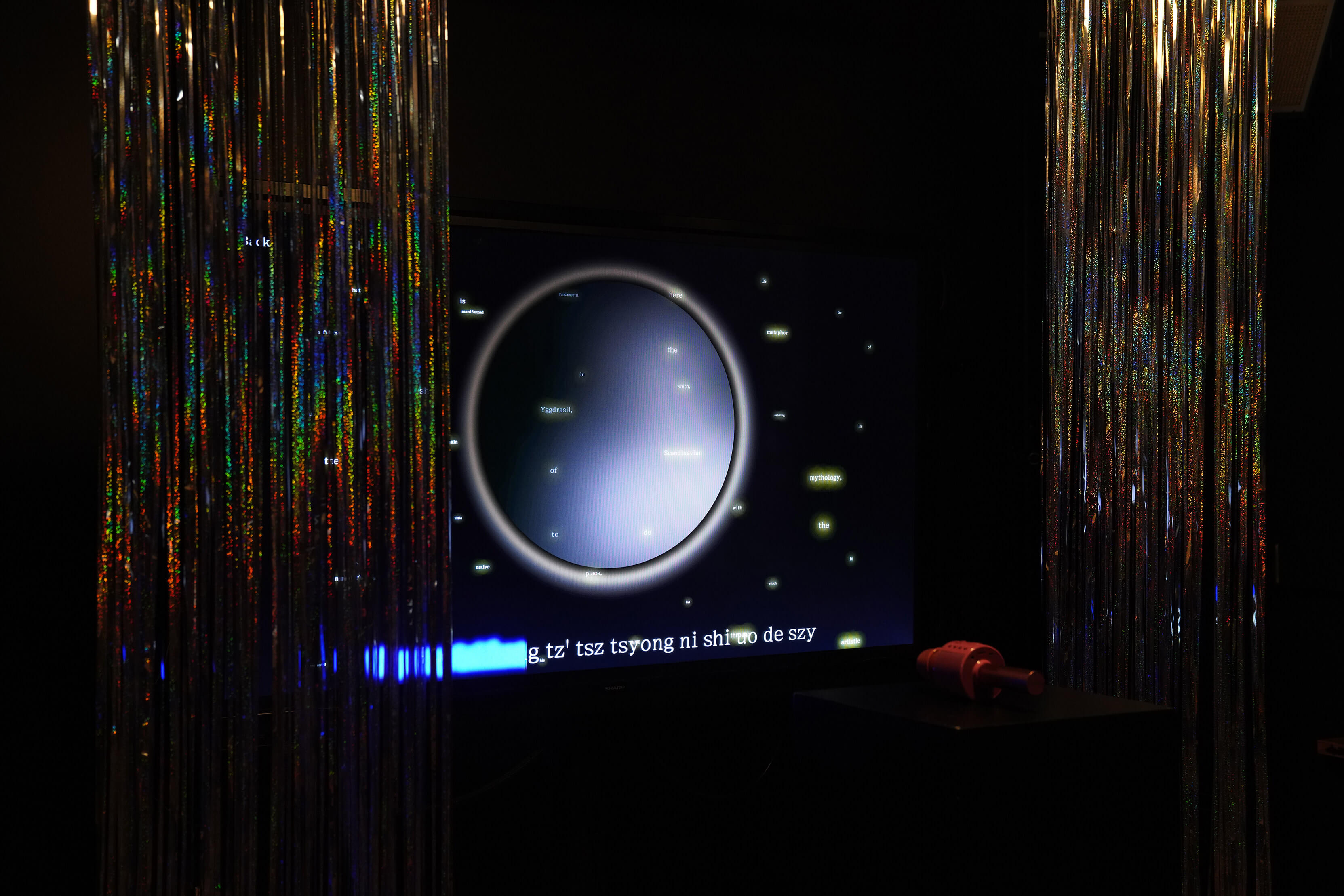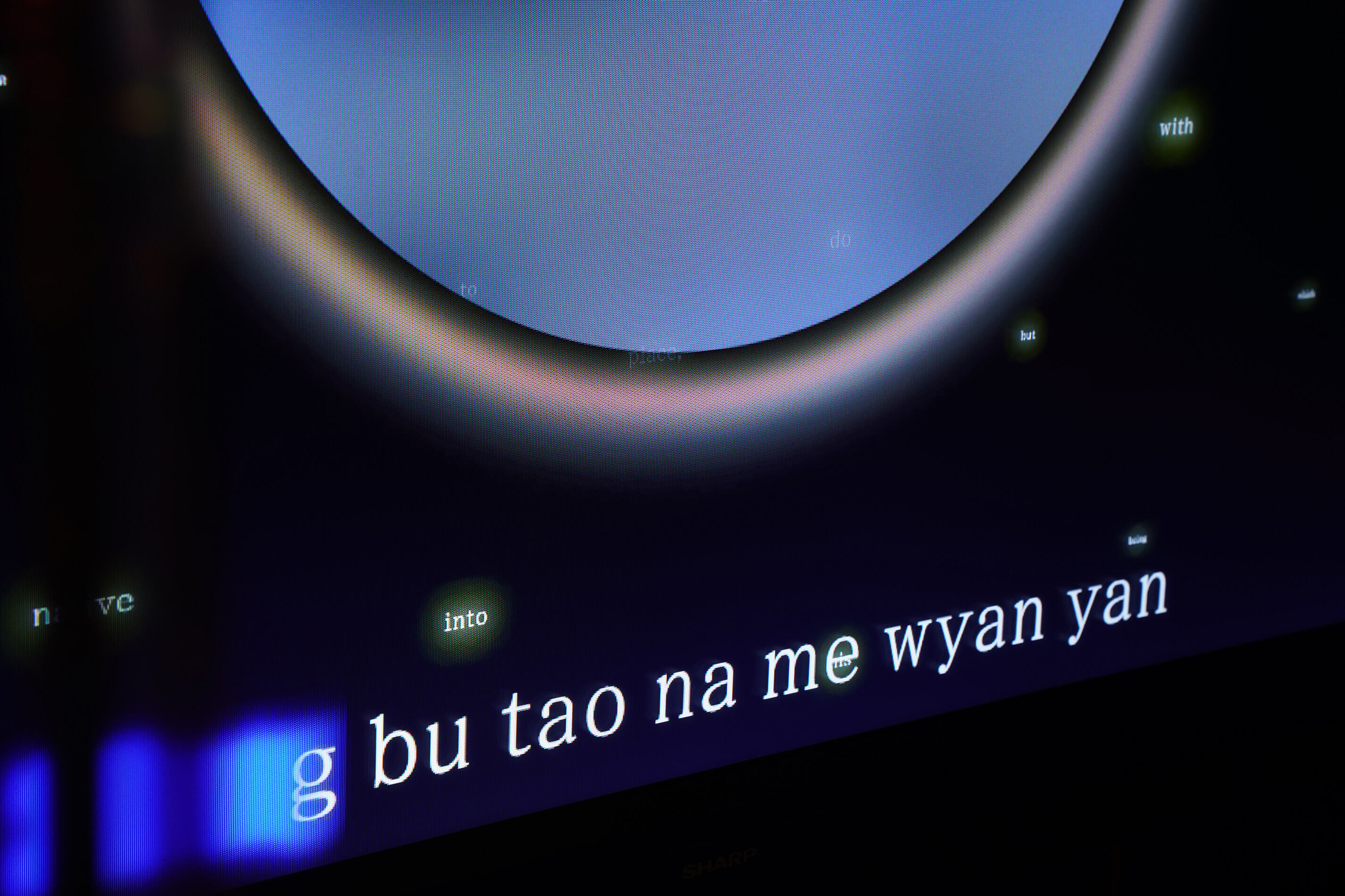 The project invites users to sing karaoke songs whose lyrics have been romanized using Latinxua Sin Wenz, a long-obsolete romanization system for Chinese that preceded the current reigning system of Hanyu Pinyin. The project explores the metaphorical associations that Latinxua Sin Wenz bears with the Sinophone diasporic experience — sound divorced from its referent, the person estranged from their “origin” (supposedly). LSWK also brings in interplanetary motifs, exploring the idea of the diaspora as planets having drifted far away from, yet nonetheless still orbiting around, the gravitational center of the homeland.