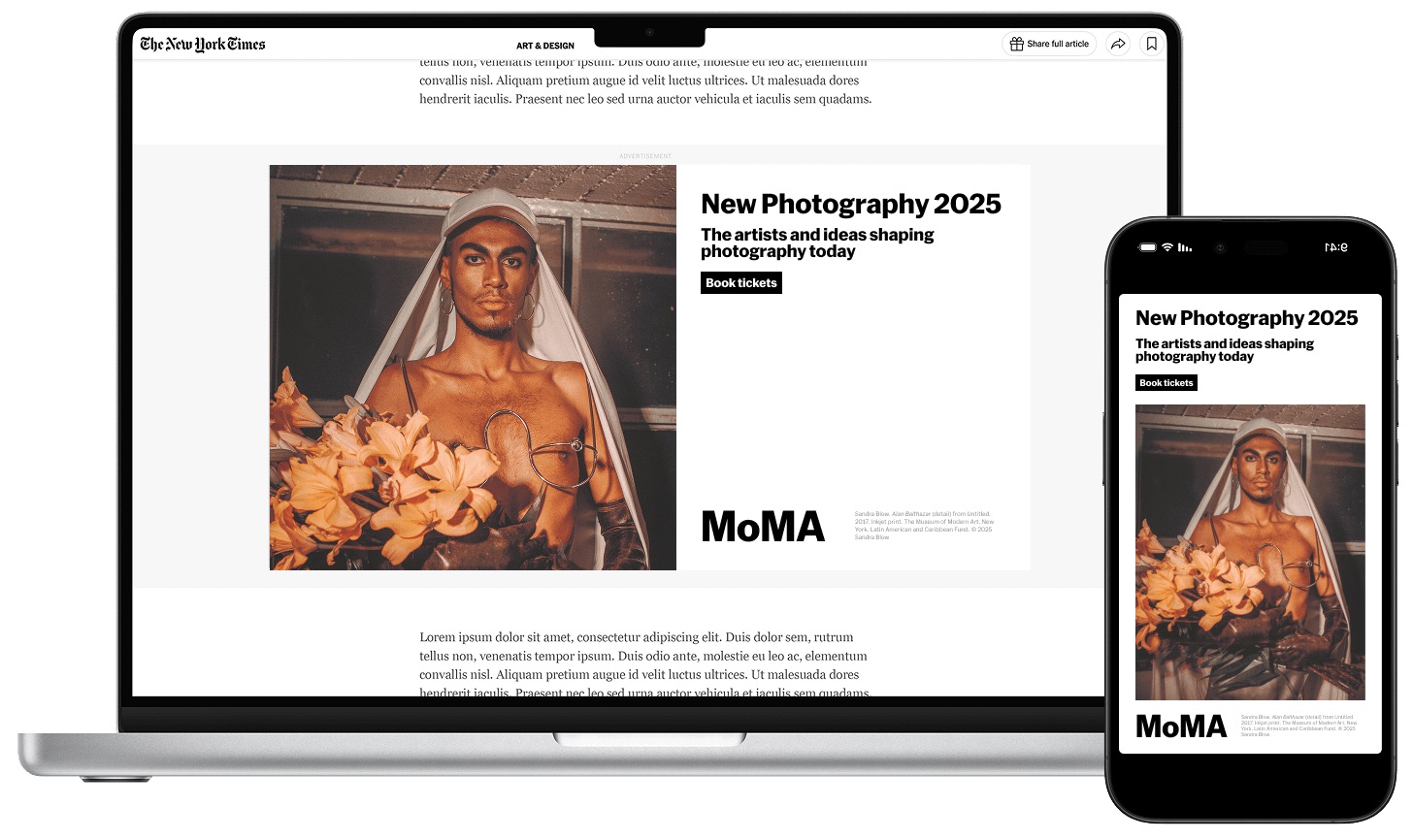 Identity, title wall, and marketing campaign for the exhibition New Photography 2025: Lines of Belonging. The show traces belonging formed across traditional boundaries of nation, family, and gender. In turn, the title wall itself becomes a map of belonging, charting movements and connections that transcend geography. The marketing campaign spanned print, digital, and paid social. In collaboration with Art Director Kevin Ballon and Creative Director Stina Sawdust.