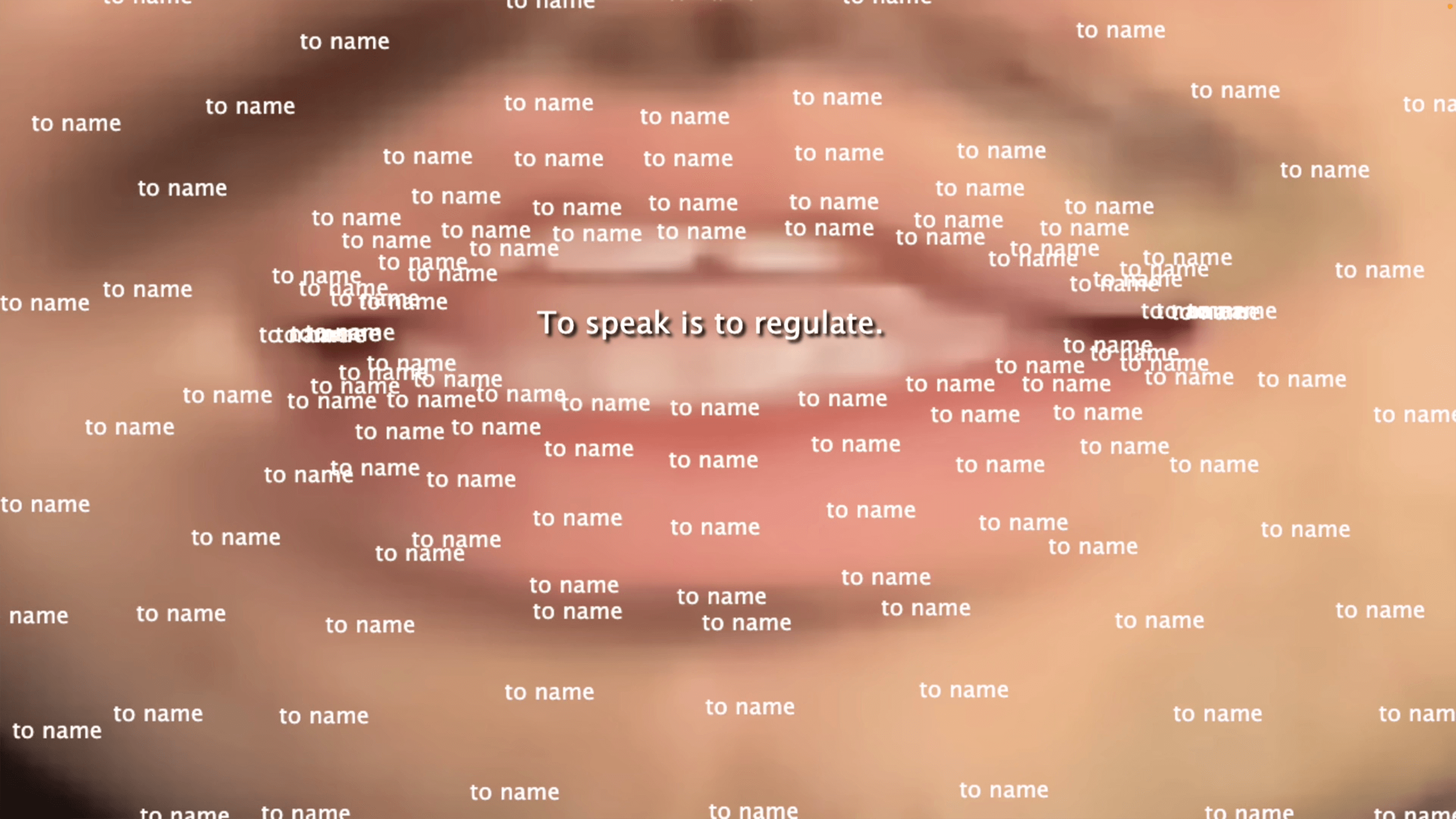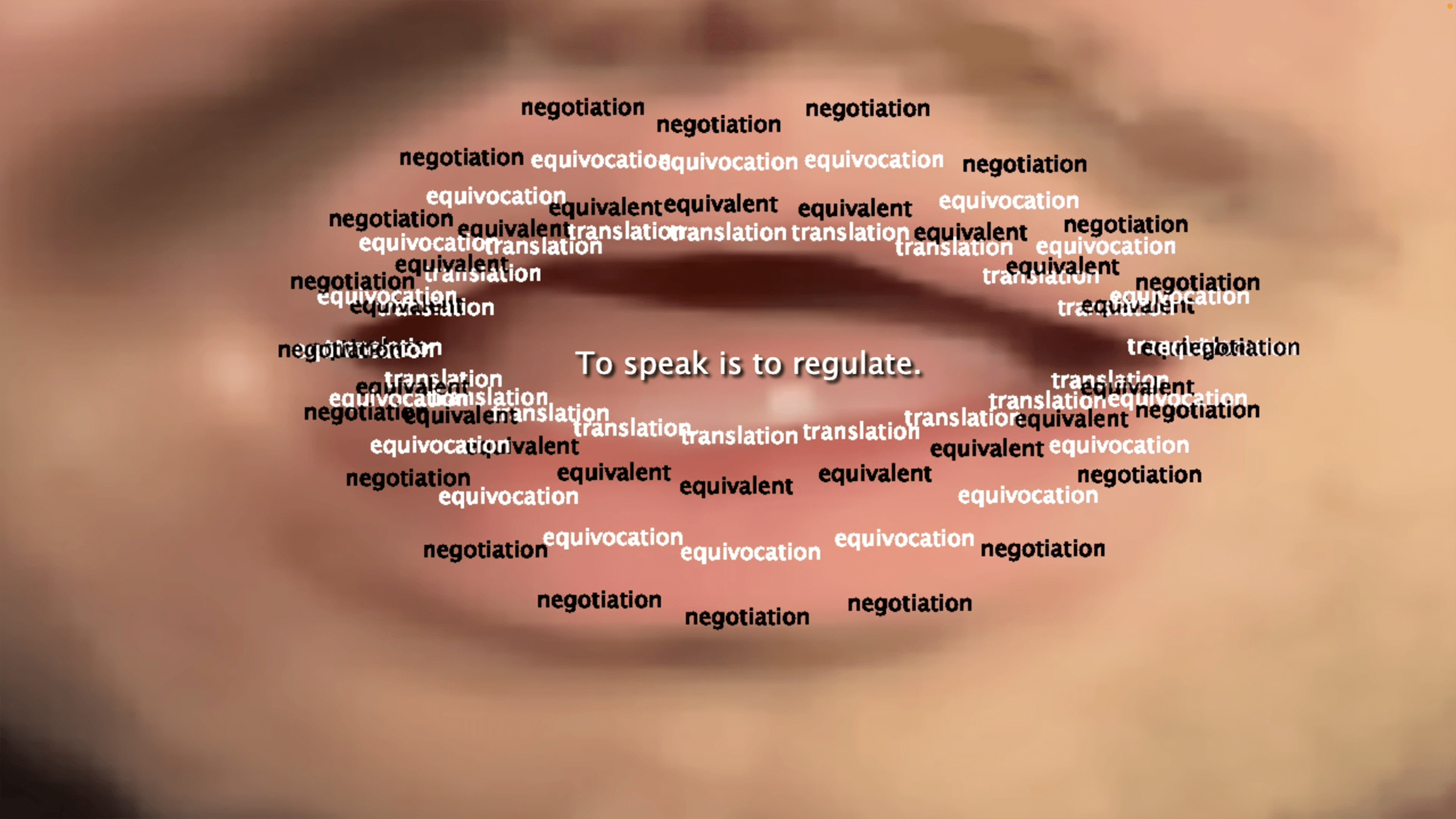 As an external system that is inherited and learned, language is never truly “mine.” Yet this artificial code of signs nonetheless determines and expresses my very interiority, arguably the closest thing I have to an authentic self. Diction dictates, both ways. As such, speaking activates a site of power, mediation, and coming into being.