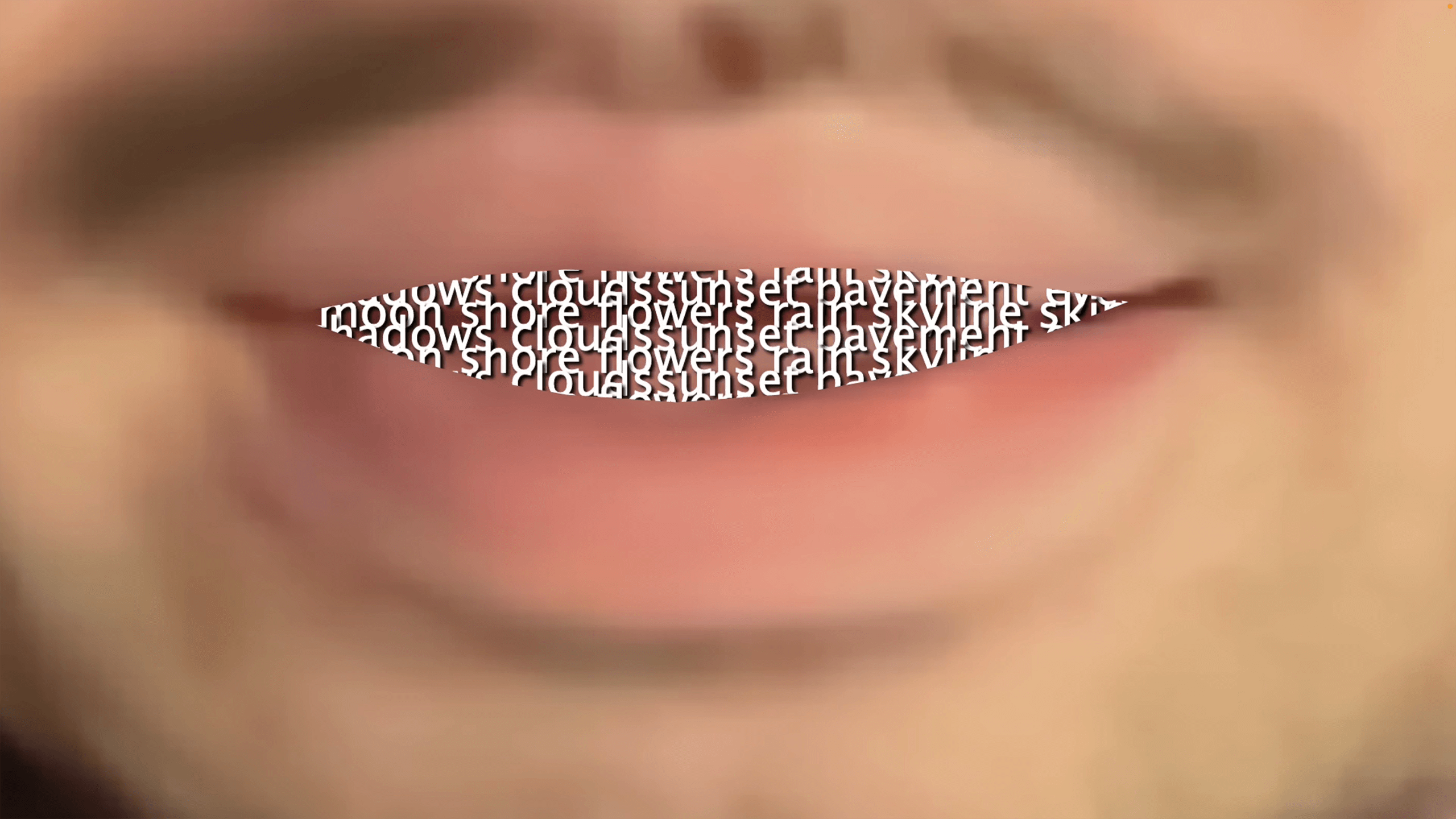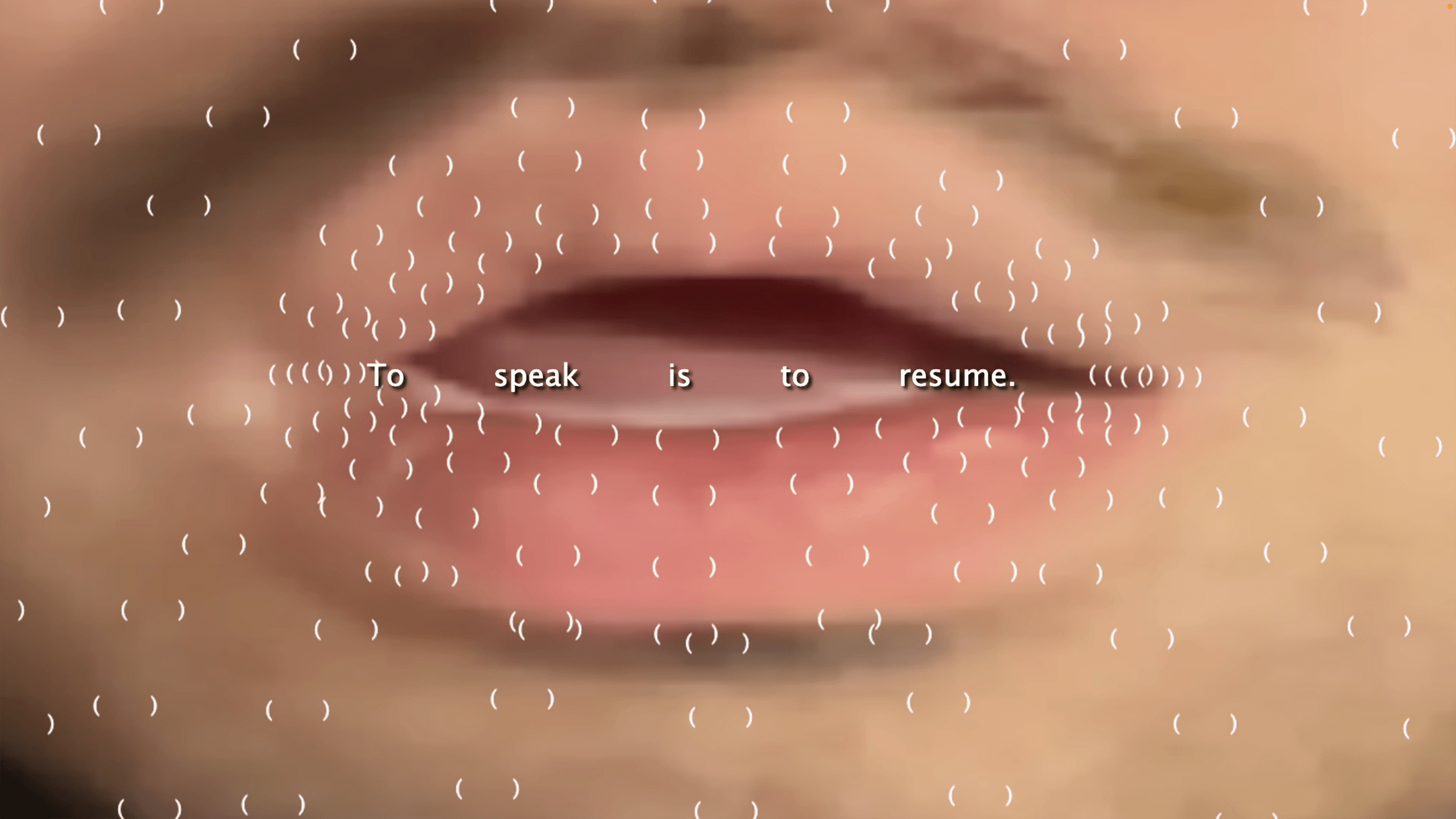 Using the webcam, the website tracks the user's mouth movements. In sync with the user's mouth, the site plays pre-recorded audio of me reading a script I wrote, creating the illusion that my voice is emanating from their body. The script is a collage of different texts, encompassing quotes from Theresa Hak Kyung Cha and Jacques Derrida, retellings of a fairytale and a news report on ice hockey geopolitics, and my own writing.