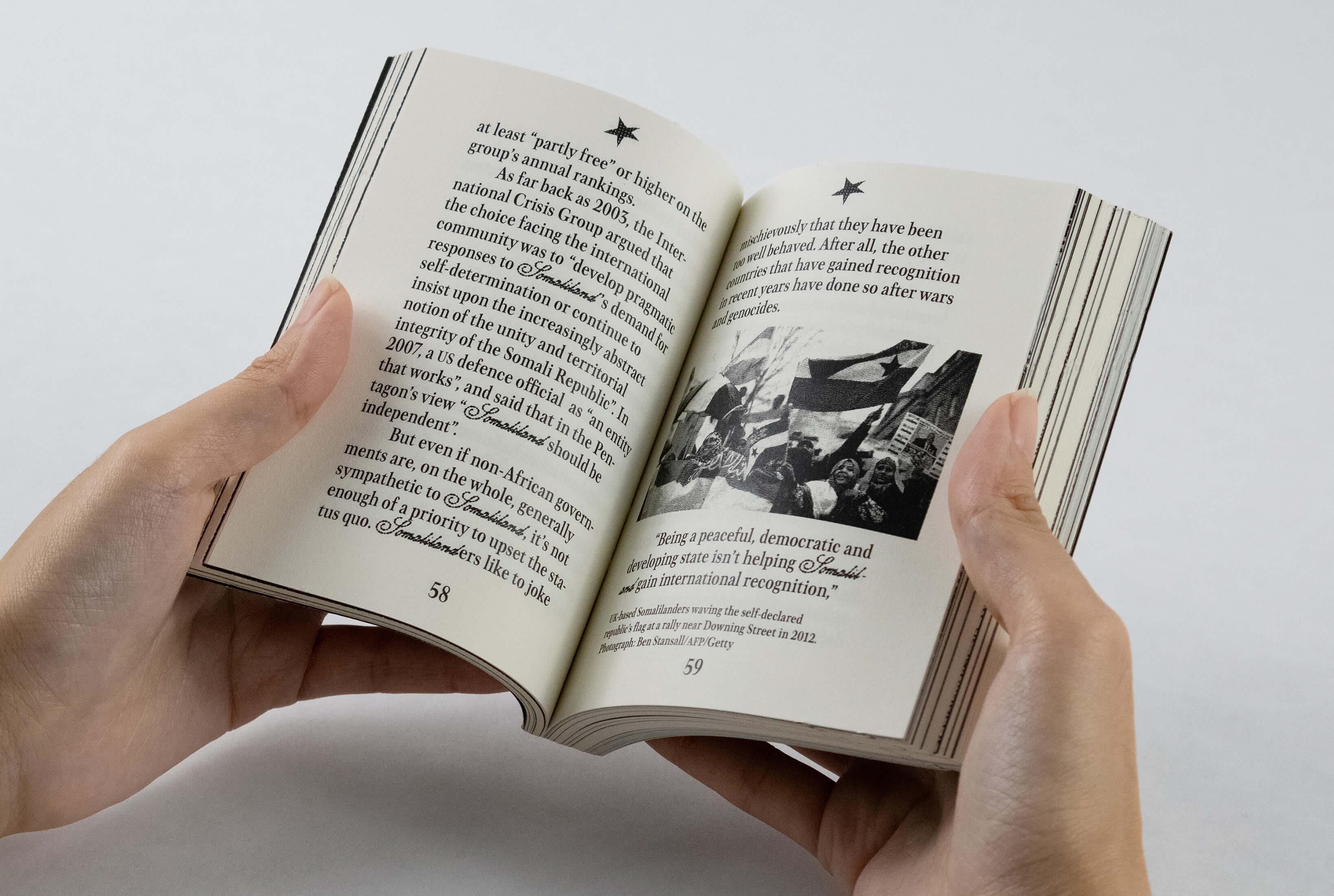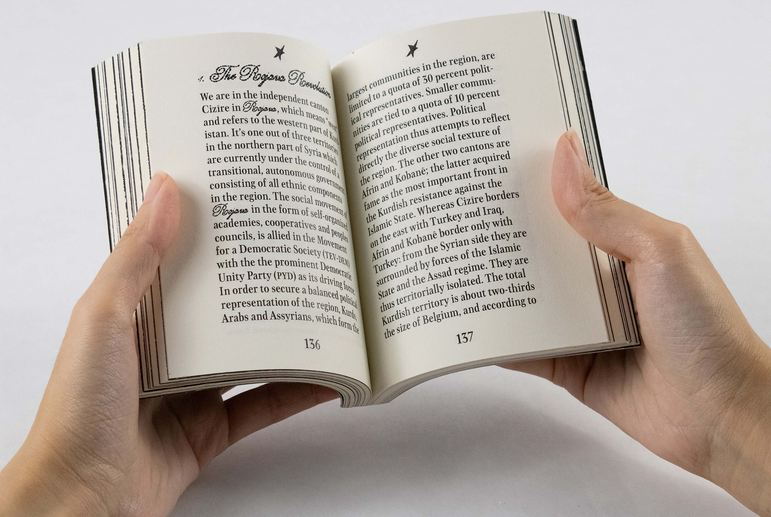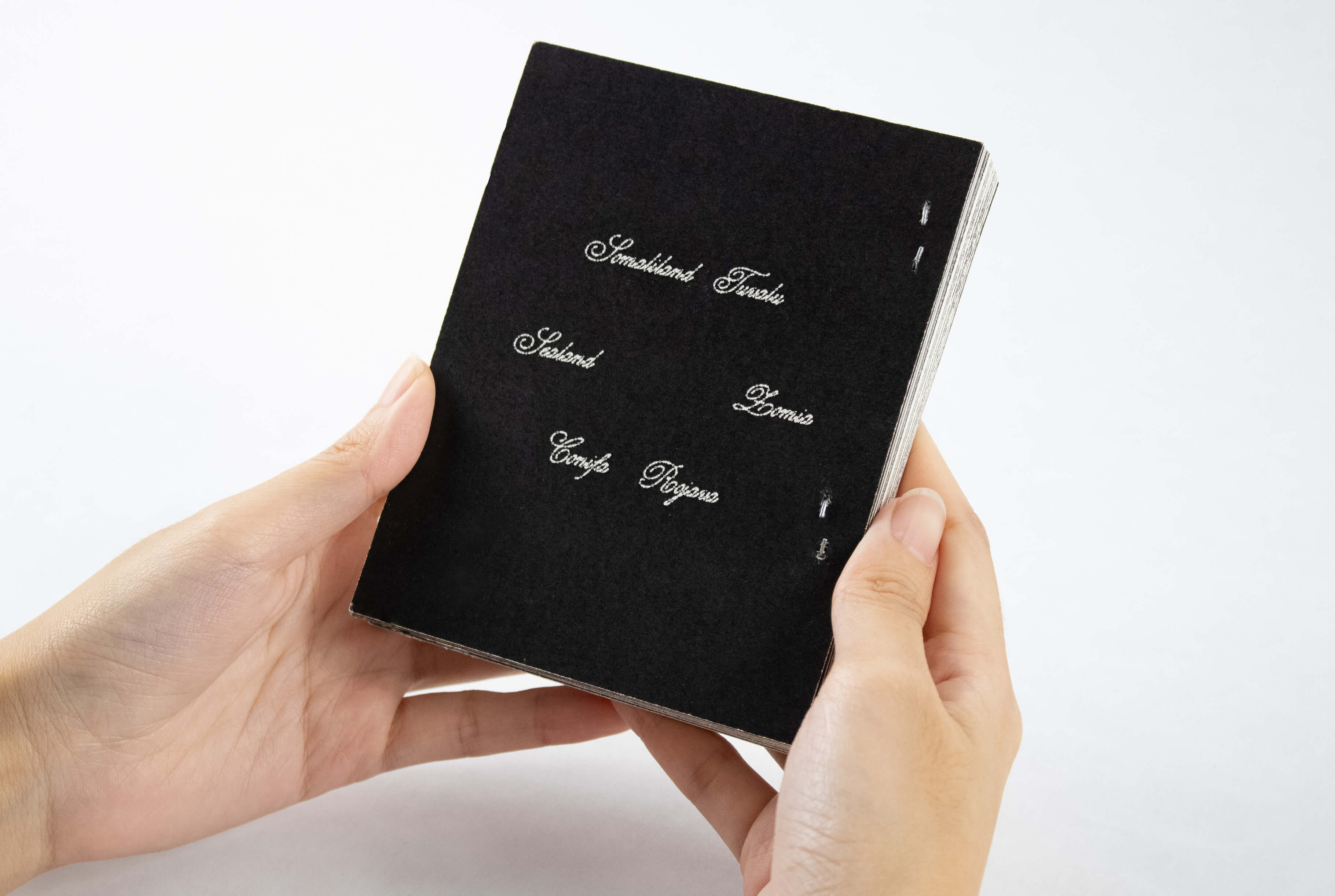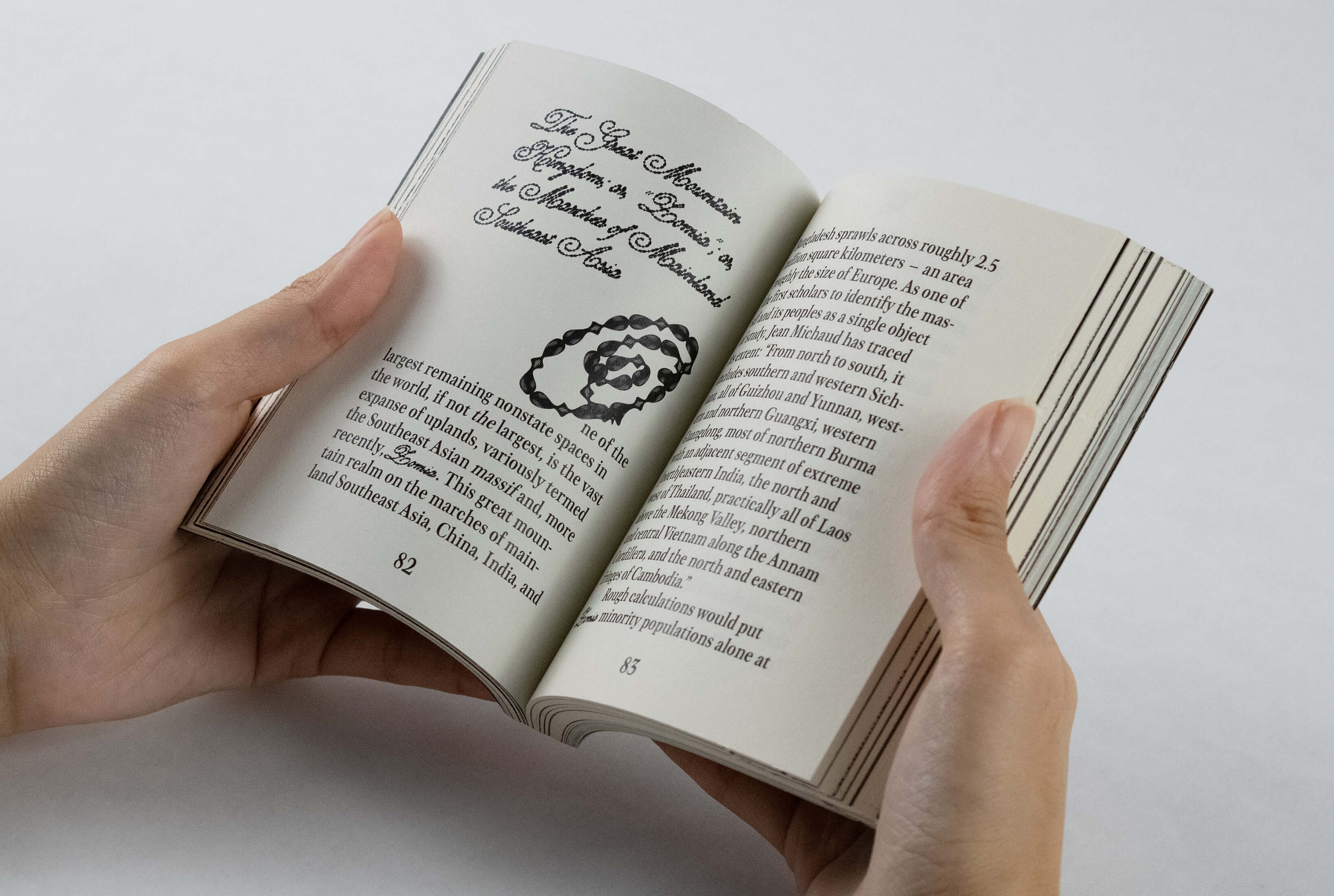 The book bootlegs passport design to reflect these fringe cases of statehood, and uses Unstately, a typeface I created by customizing Ramiro Espinoza's Medusa. My adaptation was inspired by the ornate script found in 17th-century European maps to denote country names, as well as guilloche patterns, the elaborate government-patented patterns printed on banknotes and passports to protect against counterfeiting. For the images interspersed throughout the book, I applied another engraving pattern for currency.